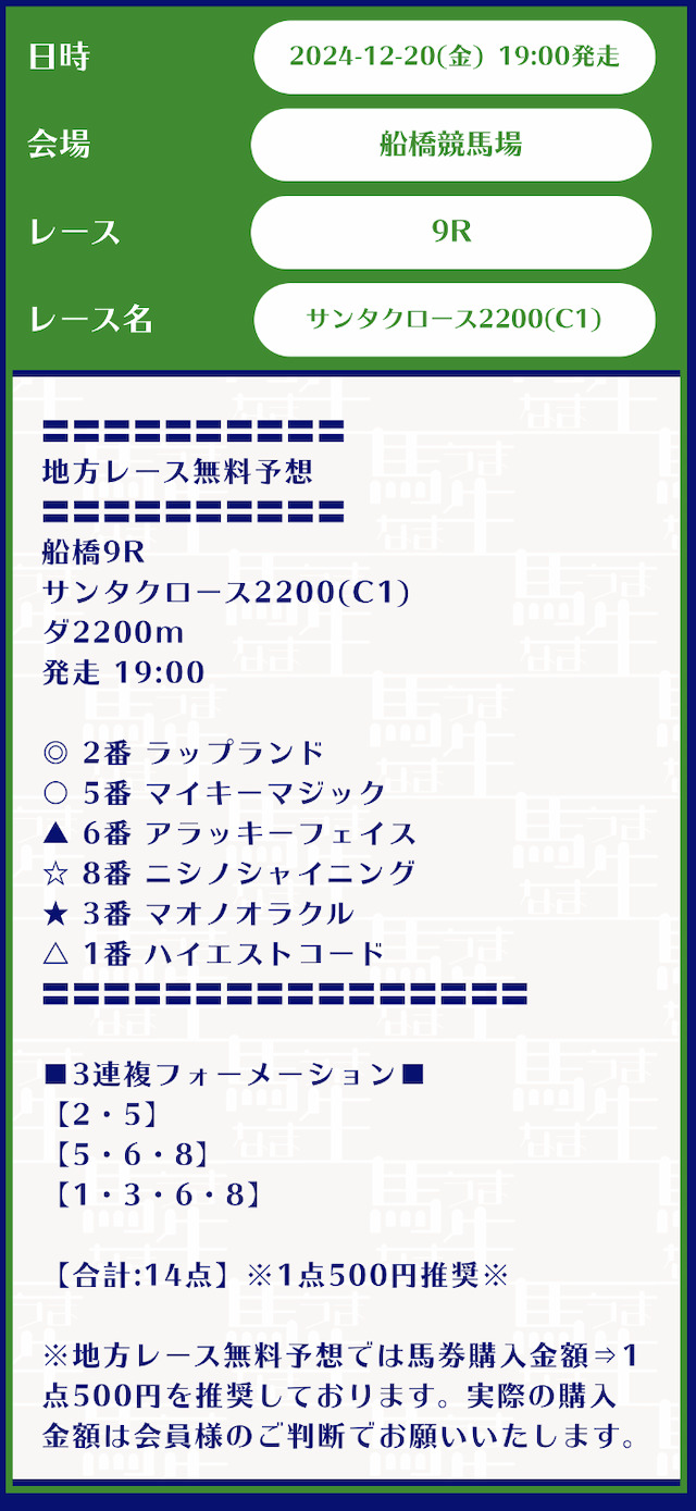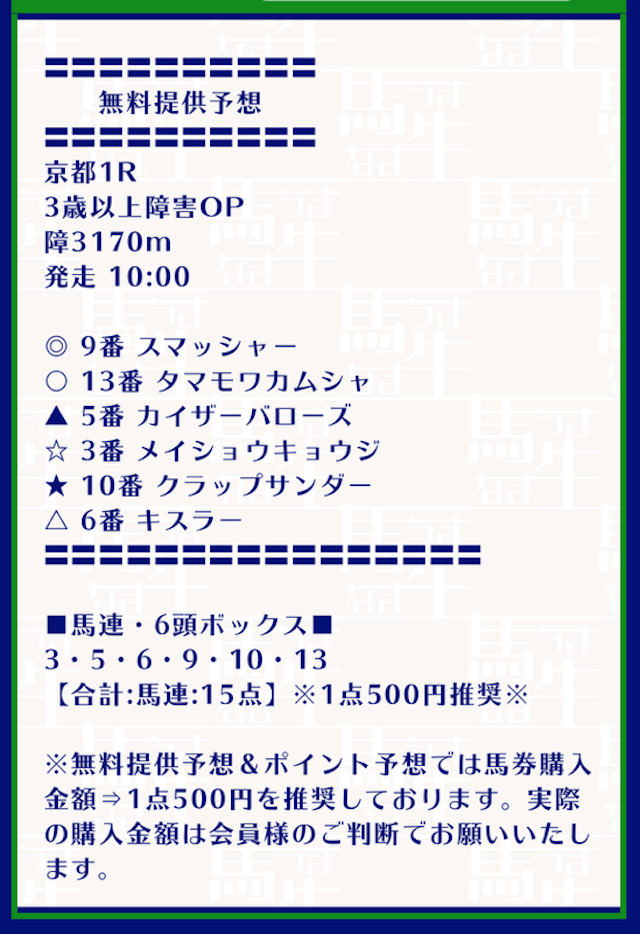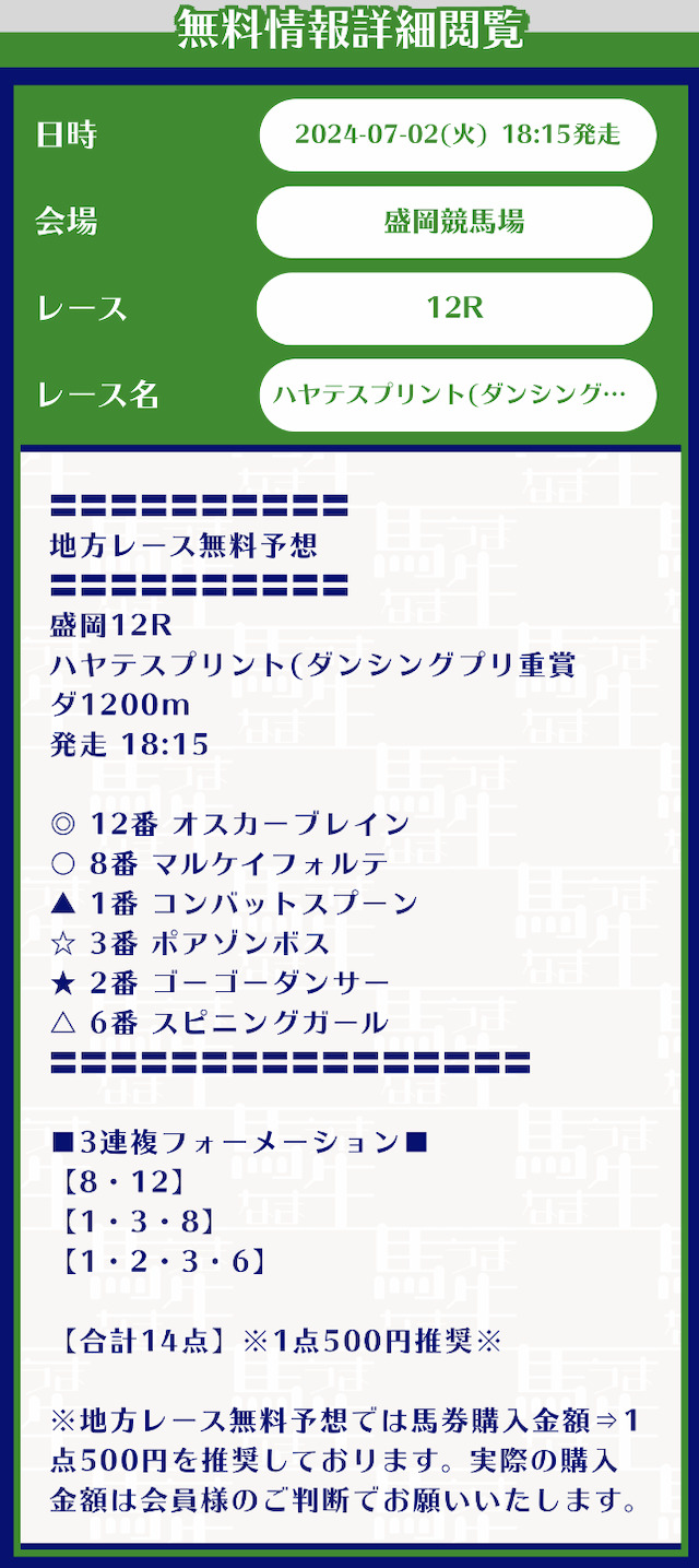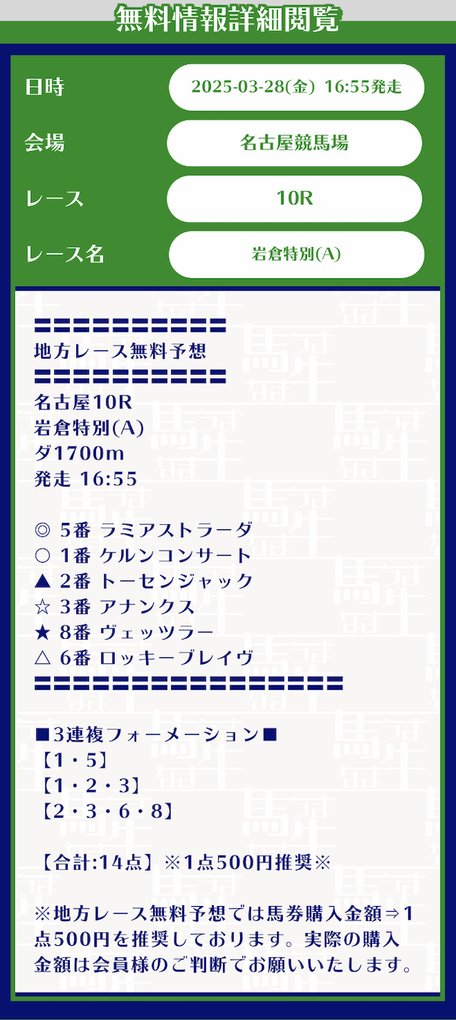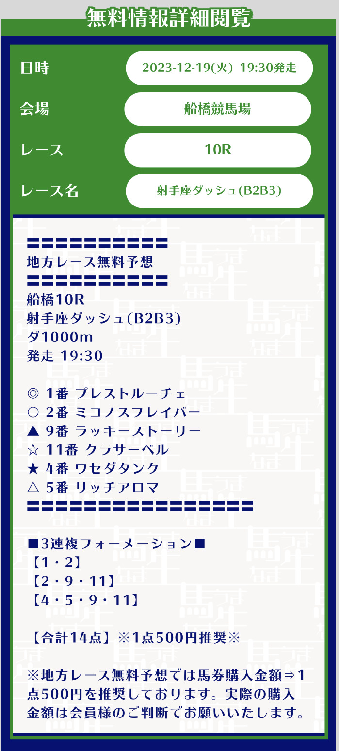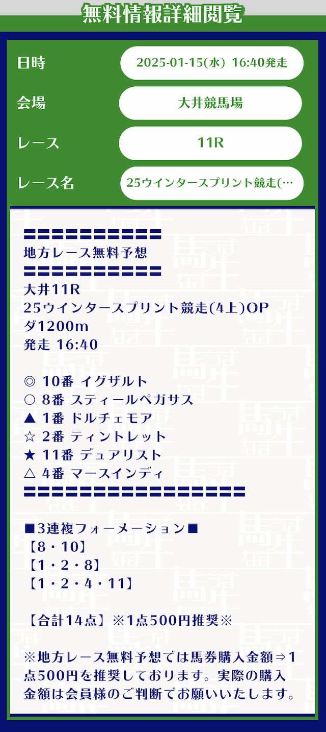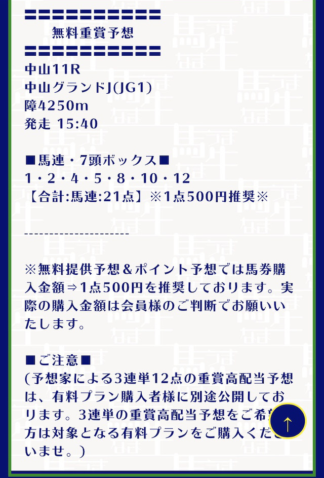 もしそんな高額なお金を持っていないという方は、無料予想で当てて資金を貯めましょう。