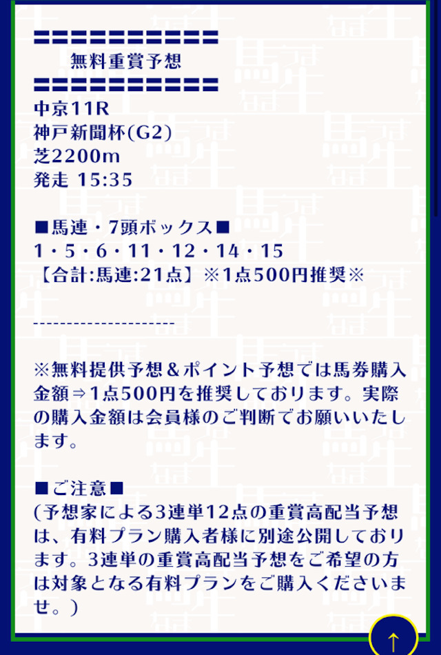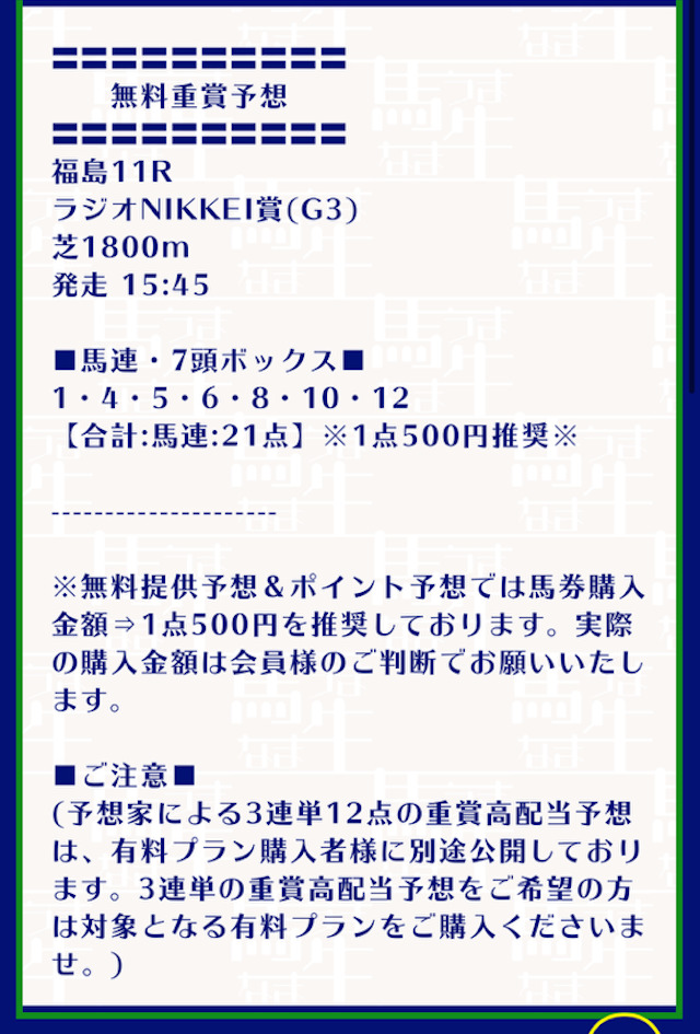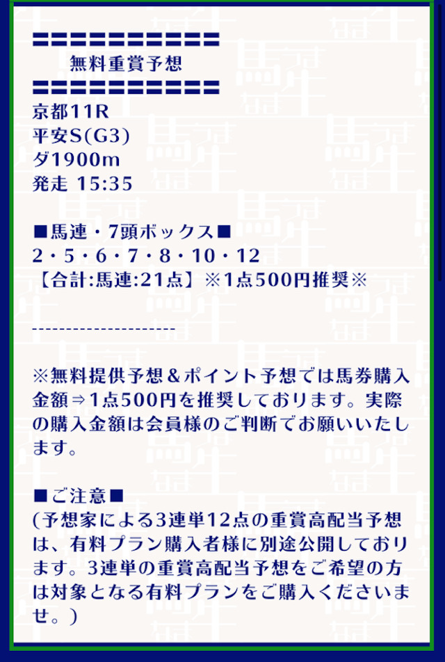- 実際の買い目例:▶︎ワイド・馬連予想◀︎