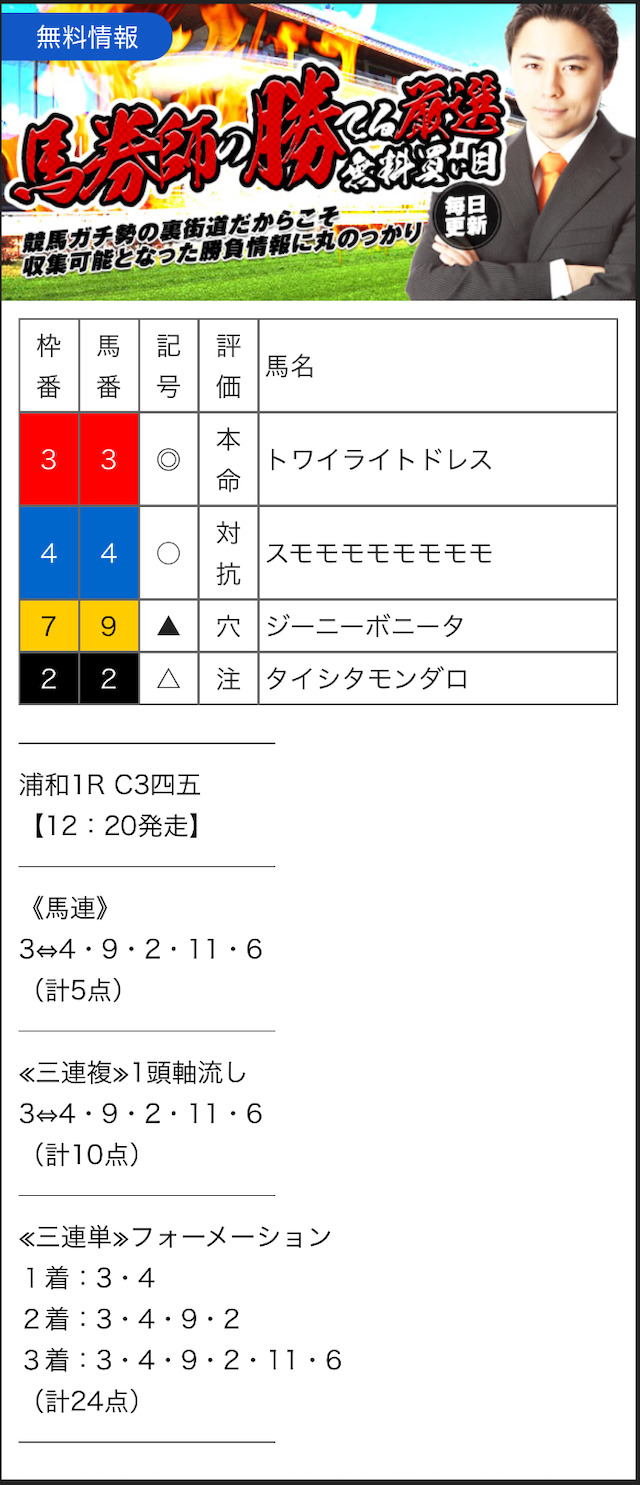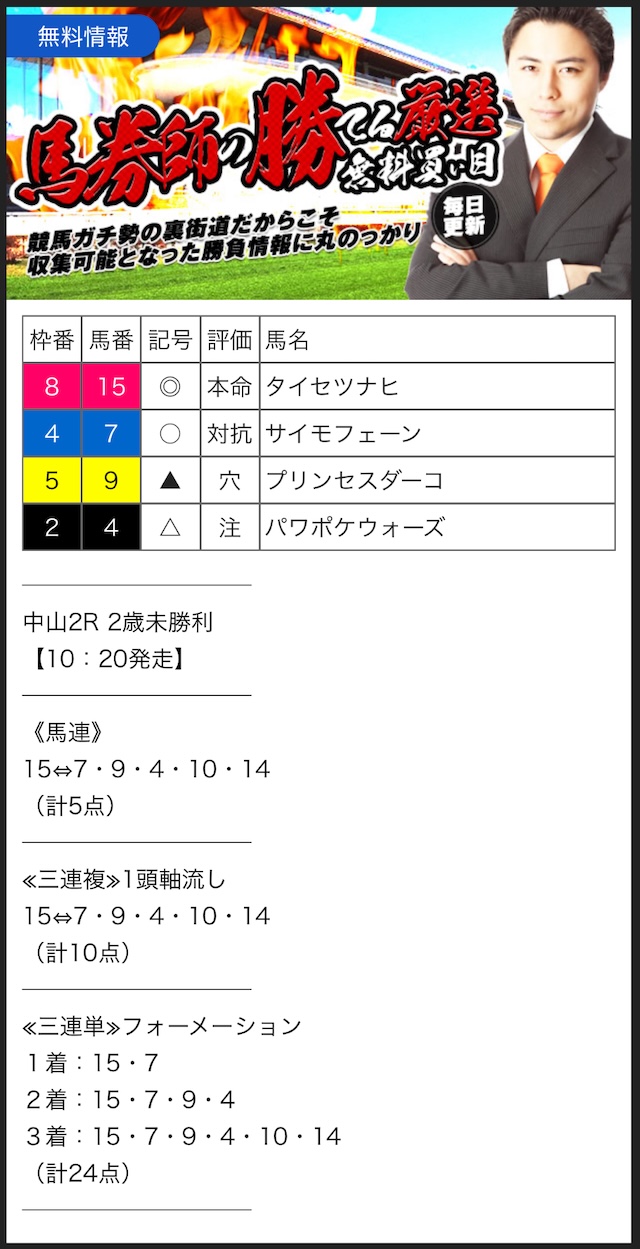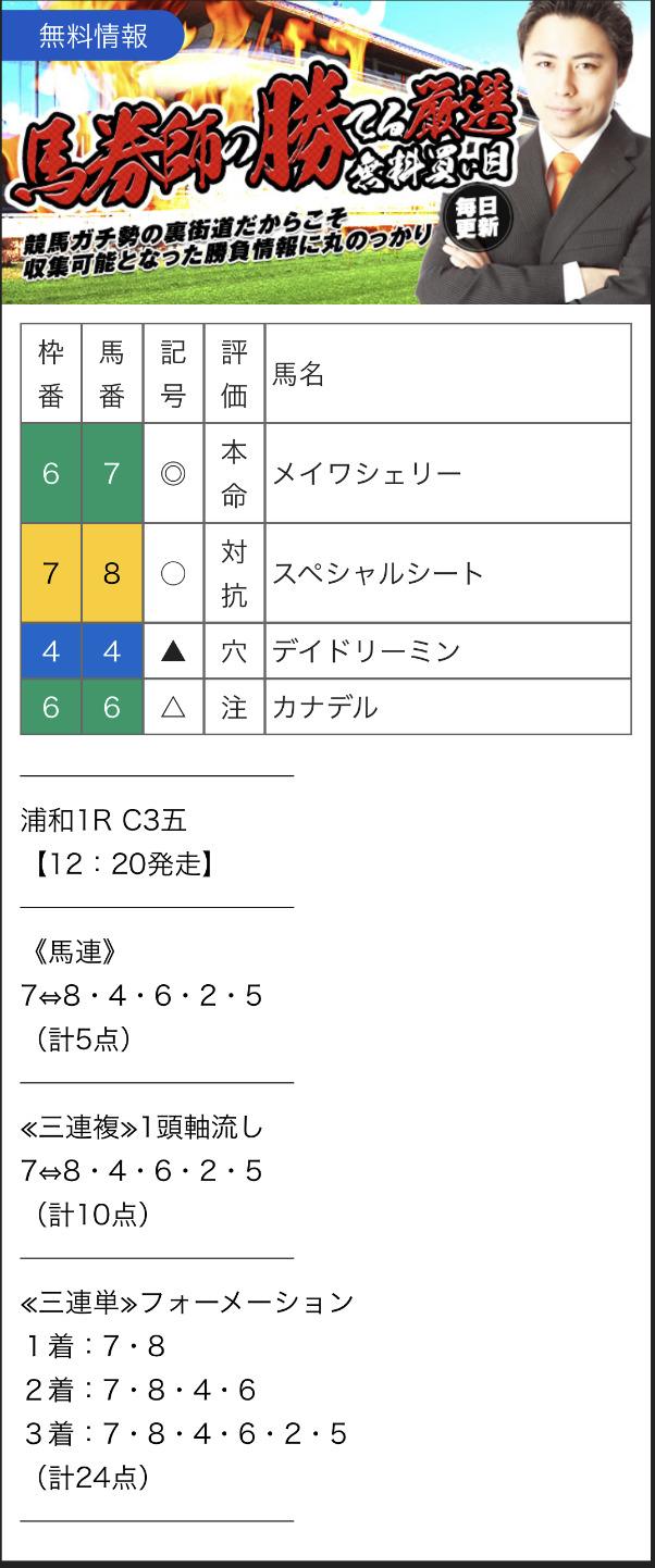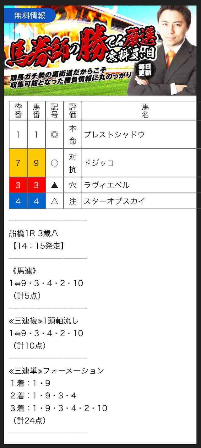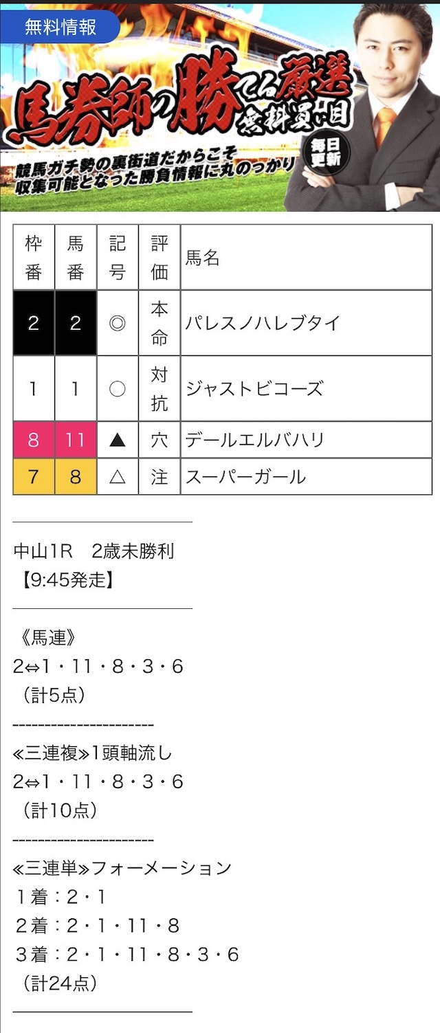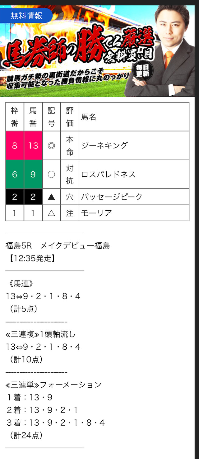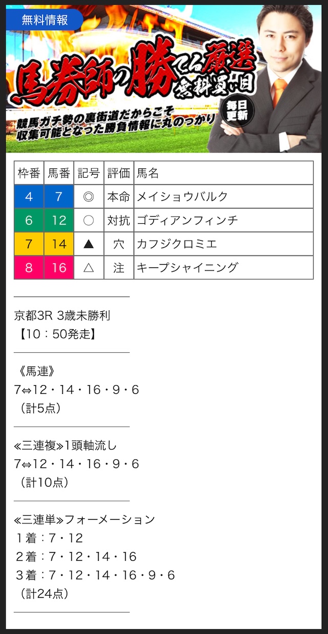 無料予想では、手堅く狙って当ててくれるので、競馬初心者の方にもオススメです。