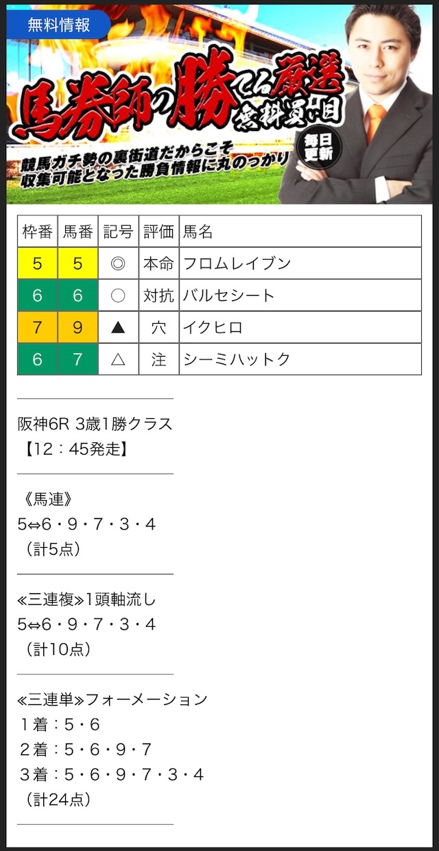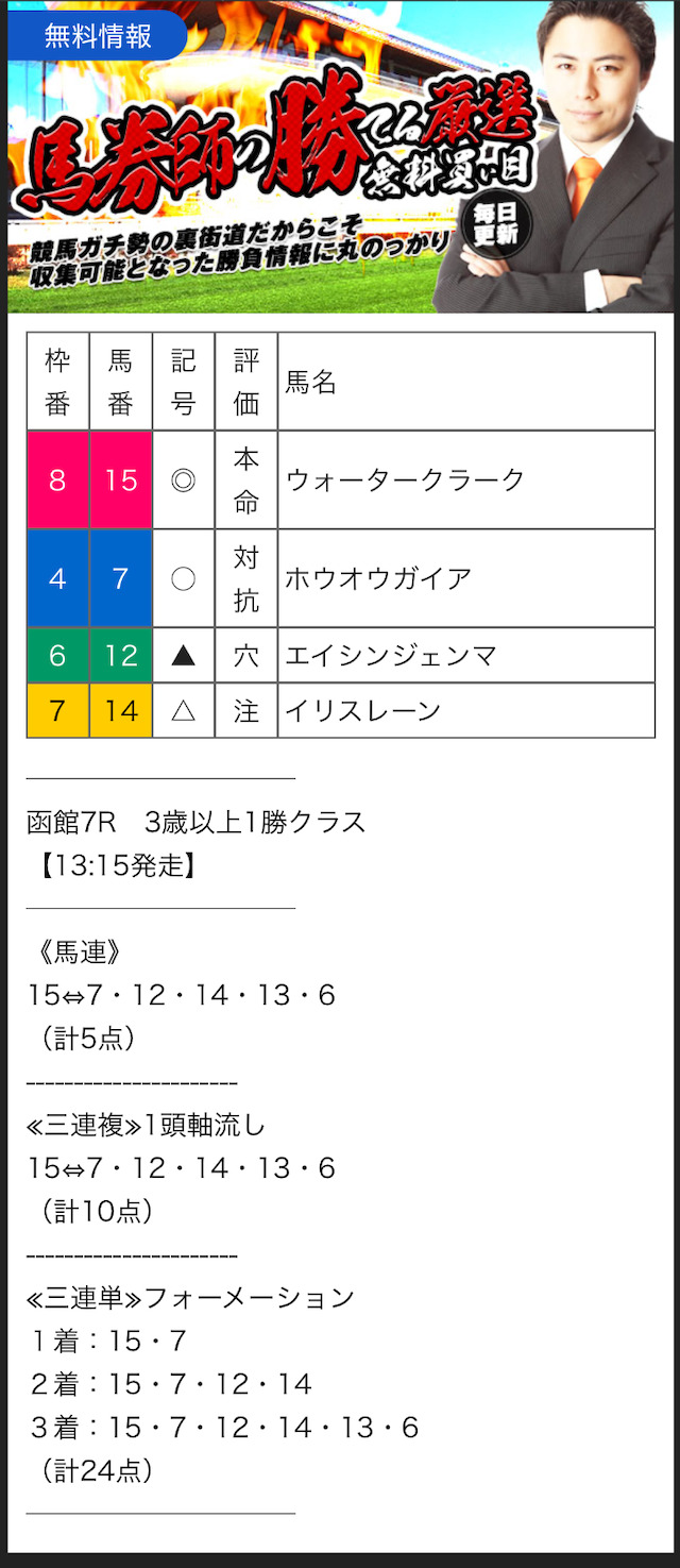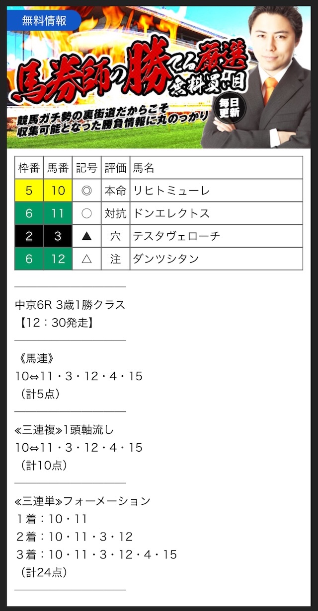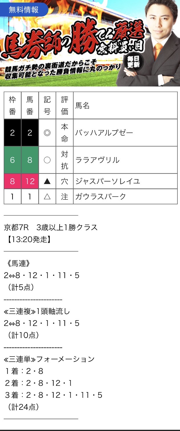 実際に今回の無料予想でも、安定して勝利をしてくれました!